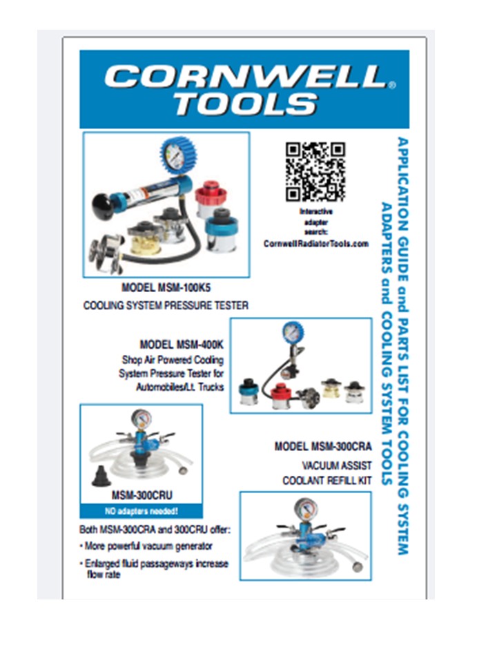 This is the radiator tools information site for Cornwell Quality Tools. Select a product below for more information, search for the adapter you need, or download printable instruction booklets.